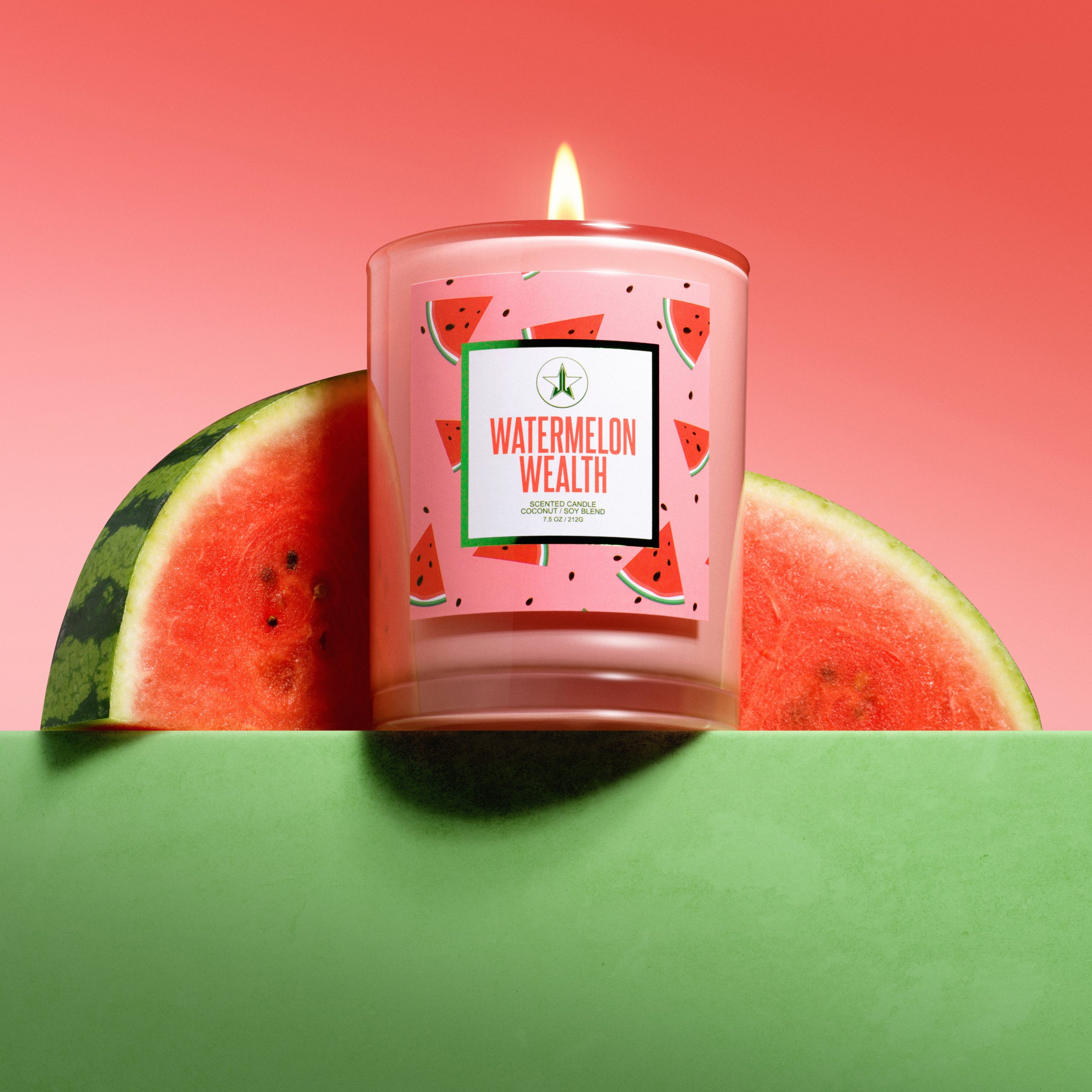Our Watermelon Wealth Candle smells like fresh and sweet watermelon.